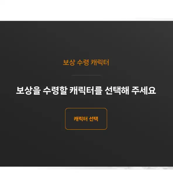 보상 수령 캐릭터는 동일 계정 내 10레벨 이상 원하는 캐릭터를 설정할 수 있습니다. (보상 기준 캐릭터와 다를 수 있습니다)